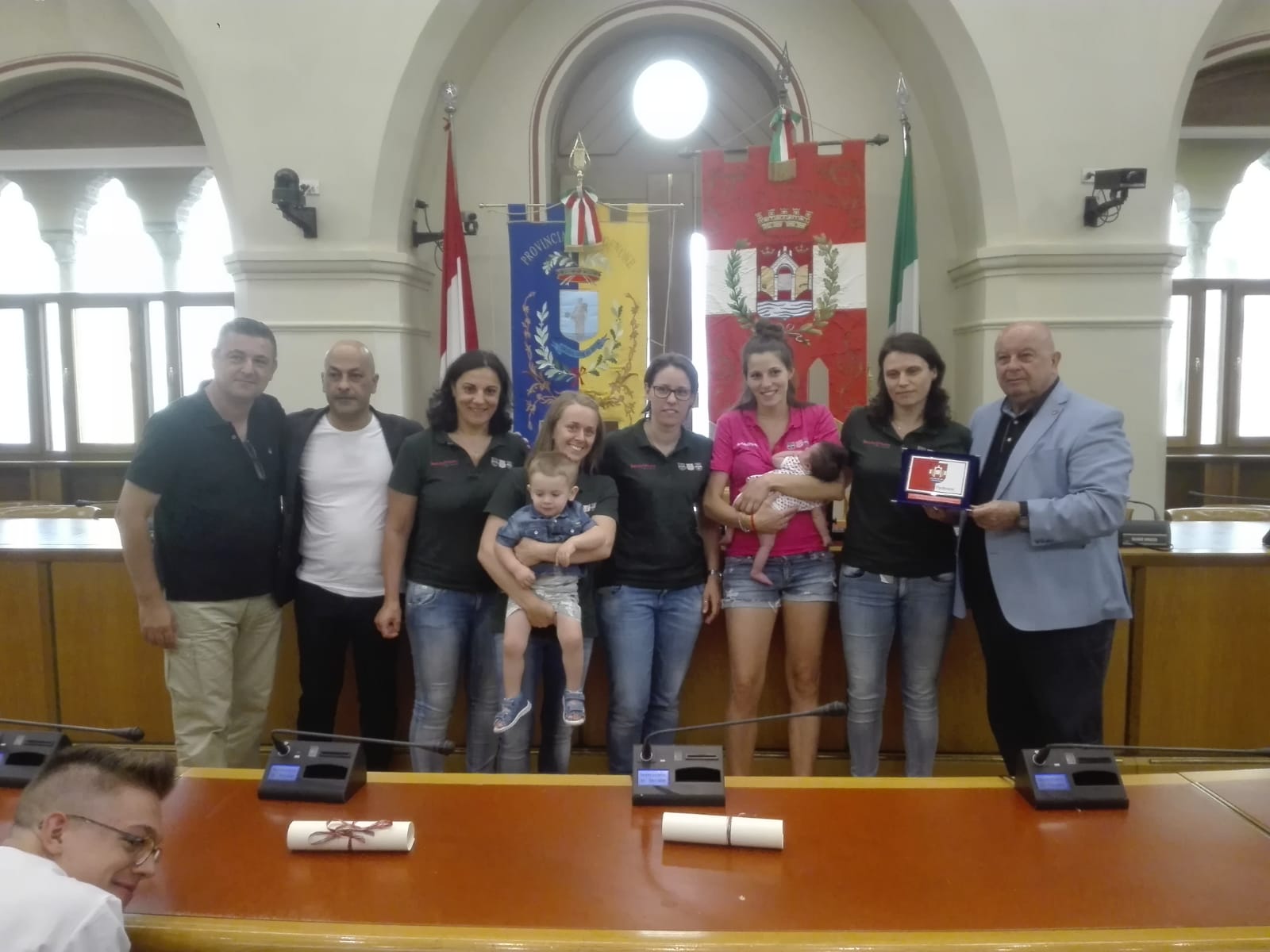 Venerdi 6 luglio, infatti, le Campionesse Italiane Uisp 2017/18 alla presenza dall’assessore allo sport Valter De Bortoli nella sala consiliare del Comune di Pordenone hanno ricevuto una targa di riconoscimento sportivo per l’importante successo conseguito alle finali nazionali Uips di calcio a 5 femminile disputate a Pesaro lo scorso 21-24 giugno.