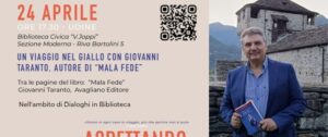 UDINE – Mercoledì 24 aprile alle 17.30, nella sala Corgnali della biblioteca Joppi di Udine, un viaggio nel giallo con Giovanni Taranto, autore di “Mala fede” (Avagliano editore), in dialogo con Oscar d’Agostino. Il romanzo giallo, uscito a settembre 2023, è il terzo capitolo di una trilogia con il Capitano Mariani come protagonista. Ma tranquilli, … Leggi tutto CRONACHE DALLA POLTRONA – Il capitano Mariani torna in Friuli