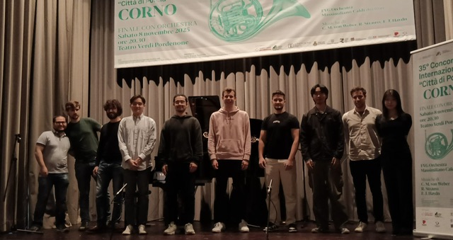 PORDENONE – Il 35° Concorso Internazionale “Città di Porcia”, che quest’anno è dedicato al corno, ha preso il via con la prima prova eliminatoria che si è svolta lunedì 3 e martedì 4 novembre 2025 al Ridotto del Teatro Pordenone. Dei 52 giovani concorrenti iscritti, provenienti da 19 Paesi del mondo, alla prova eliminatoria si sono presentati in 38 giovani cornisti che si sono confrontati su due pezzi obbligatori: il Preludio tema e variazioni di Gioachino Rossini e Fantasy for solo Horn op.88 di Malcolm Arnold.