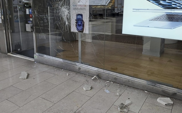 PORDENONE – Atto vandalico in Piazza XX Settembre presso il negozio di telefonia e computer Apple.
