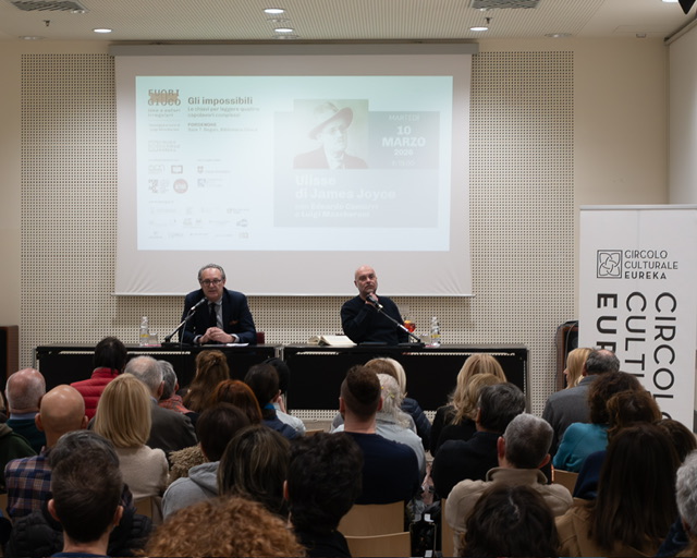 PORDENONE – Sala gremita, ieri sera,10 marzo, alla Biblioteca civica, per il primo dei quattro «impossibili» di Fuorigioco 2026, la rassegna del Circolo Culturale Eureka dedicata ai grandi capolavori che spaventano prima ancora di essere aperti. Protagonisti Edoardo Camurri — scrittore, giornalista, volto della cultura in tv e radio — e Luigi Mascheroni, curatore della rassegna. Camurri ha raccontato i propri fallimenti iniziali da ragazzino con Joyce, la prima traduzione con l’apparato titanico di note.