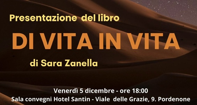 PORDENONE – Venerdì 5 dicembre alle ore 18 nella sala convegni dell’Hotel Santin, la Fondazione Giovanni Santin promuove il nuovo libro “Di vita in vita” di Sara Zanella.