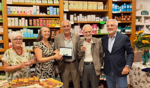 I due esponenti delle istituzioni hanno espresso le loro congratulazioni per la professionalità e l’impegno svolti in questi lunghi anni dai coniugi Antonio Bessega e Tecla Prade, assieme alla figlia Agnese.