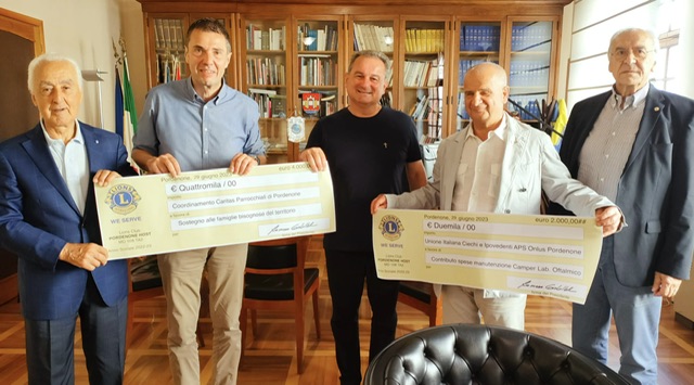 Durante la serata furono raccolti circa 6 mila euro, che oggi sono stati così ripartiti: 4.000 € a don Flavio Martin, responsabile delle Caritas cittadine, che con questa cifra provvederà al sostegno delle famiglie bisognose della nostra città, e 2.000 € a Tullio Frau, presidente dell’Agenzia Internazionale per la Prevenzione della Cecità di Pordenone per l’acquisto di nuove apparecchiature e per le spese di manutenzione del camper laboratorio oftalmico che l’Agenzia ha ricevuto in dono alcuni anni or sono proprio dal Lions Club Pordenone Host.