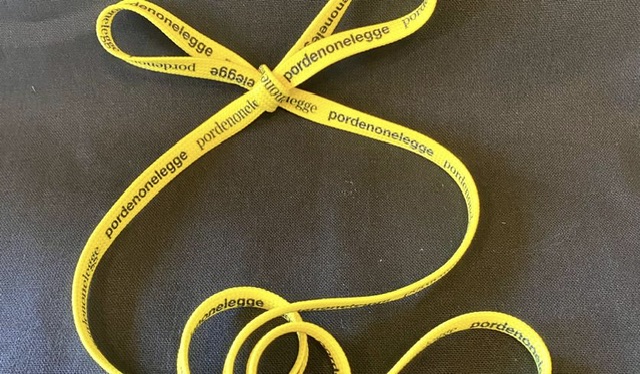 Ma saranno disponibili anche pezzi delle passate edizioni, per continuare la propria collezione personale se il covid vi ha tenuto lontani dalla città. Non mancheranno poi gli ombrelli gialli e i quaderni in due formati, per appuntare pensieri e riflessioni durante gli incontri del festival. Novità per la 24^ edizione di pordenonelegge, saranno il notebook, la borraccia, la penna, gli antistress – ovviamente a forma di libro – e, vera chicca originale e che potrà personalizzare tantissime sneakers, i lacci per le